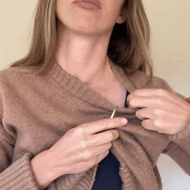 Loop around your bra strap (if you're wearing one) to make it extra secure!