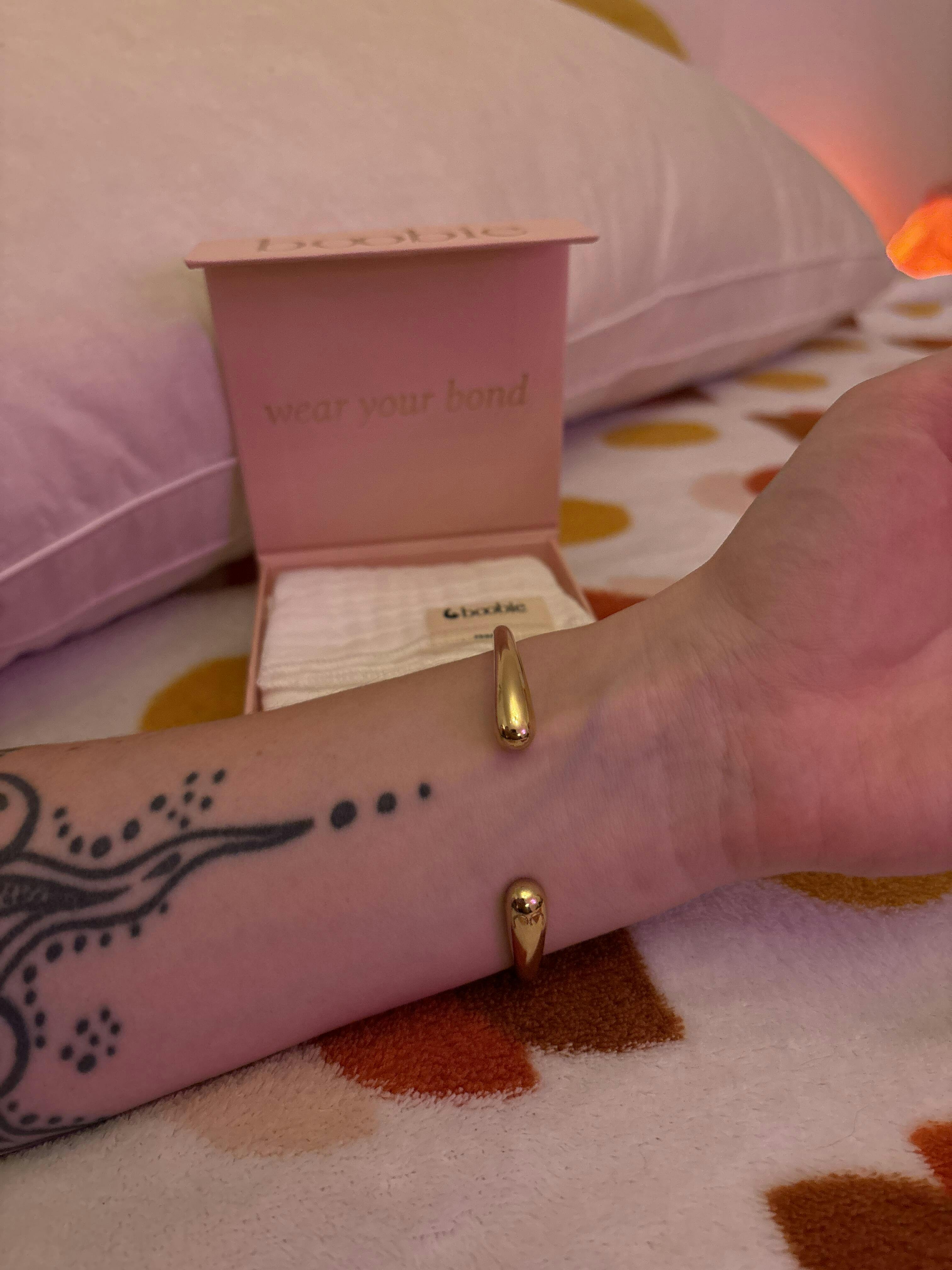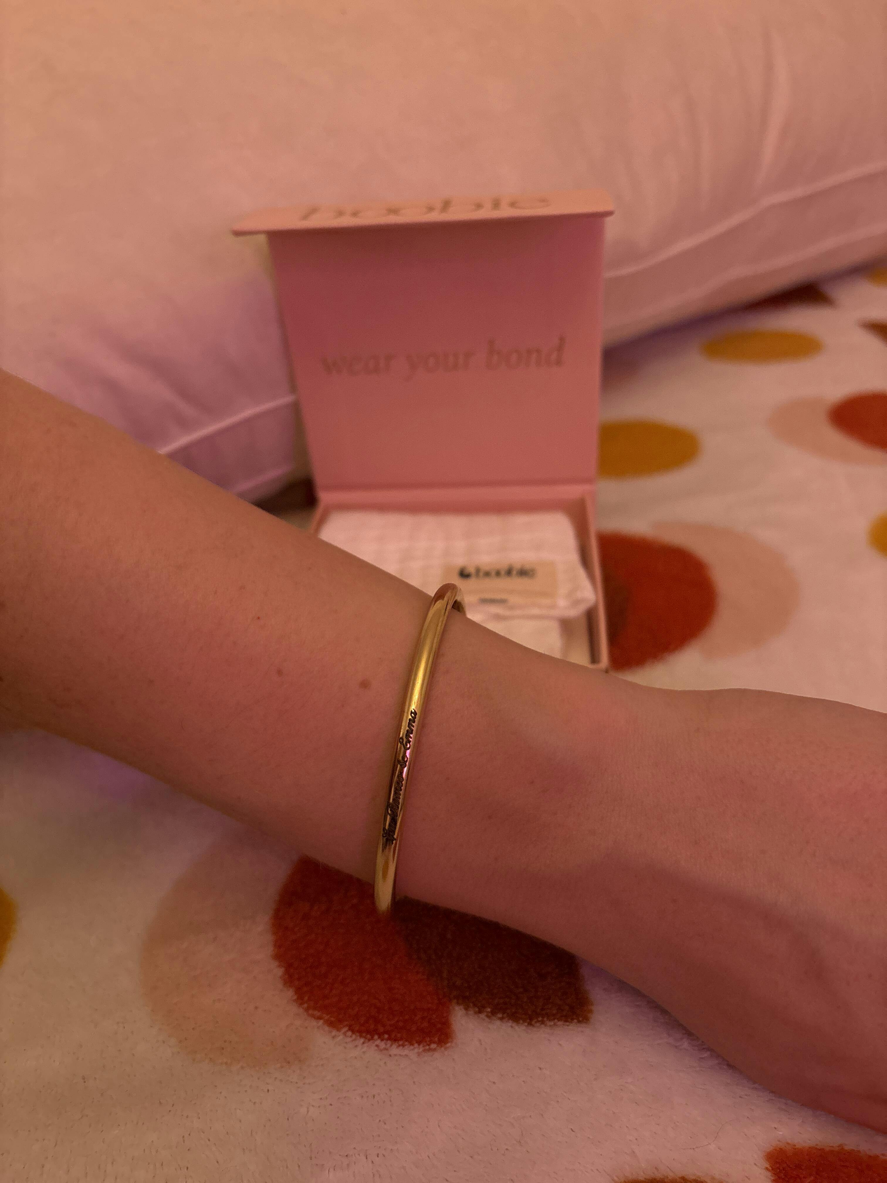 I love my boobie bracelet! Love the concept of it but also the style goes so well with my other jewellery. The engraving is such a nice touch too. Bought this as a present to myself and I’m so glad.